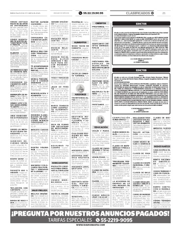 MIÉRCOLES 8 DE OCTUBRE DE 2025 CIUDAD DE MÉXICO 55.22.19.90.95 CLASIFICADOS B! 21