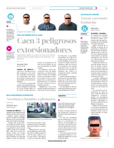 SSC capturaron a tres hom- ingresaron a su negocio, le pi- cantidad de dinero señalada la misma colonia, donde se