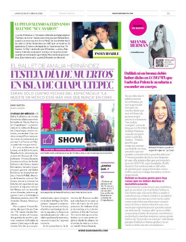 entre ofrendas, calaveras gi- ● El espectáculo tiene 20 actos y dura más de dos horas. bre, el Día de tan fuerte que ella no le diría a nadie si