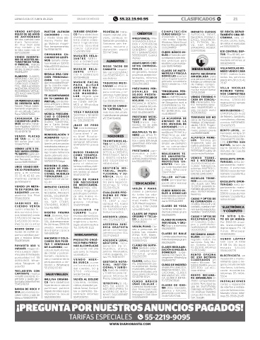 LUNES 13 DE OCTUBRE DE 2025 CIUDAD DE MÉXICO 55.22.19.90.95 CLASIFICADOS B! 21