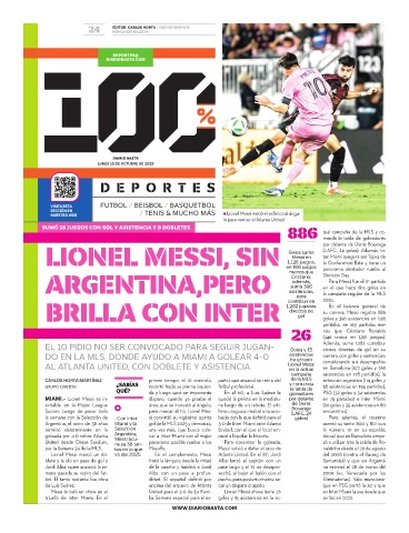 triunfo de Inter Miami. En el lia. Semana especial para el es- goles y 15 asistencias en la ac- arribó en 2023.
