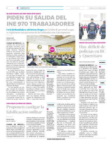 tiva del INE, que encabeza beneficios establecidos” in- RECORTES cortes. de policías para cuidar a los xico, se lo-