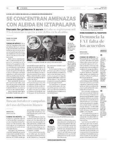 976 denuncias respecto a este delito en la alcaldía SOBRE INCREMENTO AL TRANSPORTE