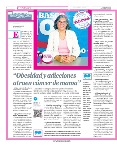 principal causa de muerte oncoló-          HOY TOCA,                                                             go, pero hemos visto que ahorita se