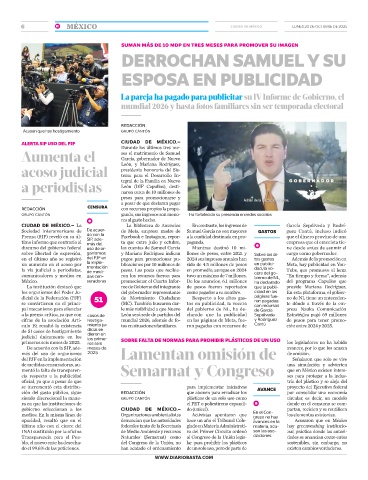 dicial de la Federación (PJF) 51 de Movimiento Ciudadano Respecto a los altos gas- páginas fue- no de NL tiene un anteceden-