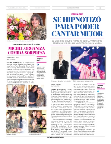 No se esperaba este fiestón, preparado y con- • El famoso hipnotista John Miltón. • Eduin quiere mejorar su desempeño.