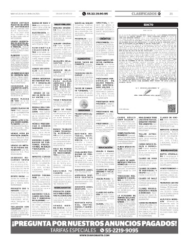 MARTES 21 DE OCTUBRE DE 2025 CIUDAD DE MÉXICO 55.22.19.90.95 CLASIFICADOS B! 21