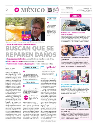ríos de Sonora en 2014. ela compañía ción” y “en el gobierno del pre- nómica Paco Ignacio Taibo II.