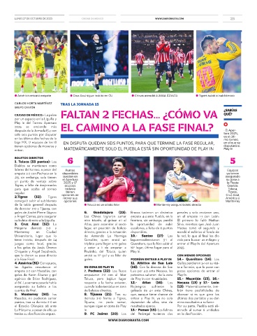 5. Monterrey (30): los 8. Tijuana (21): Tras su que, aunque tiene chance de alcanzar si es que gana los