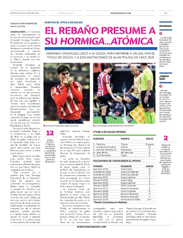 Armando González llegó a 12 galardón", expresó Gabriel TABLA DE GOLEO AP2025