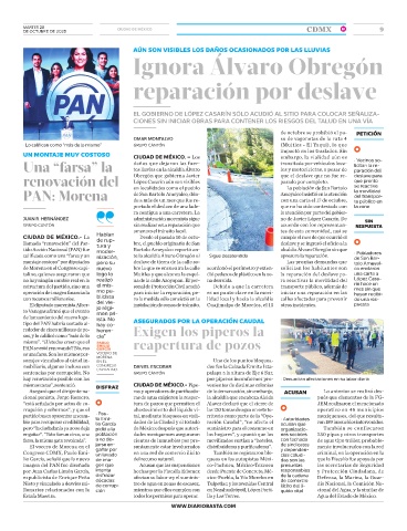 calificada como una “farsa y un nización, te la alcaldía Álvaro Obregón el • Sigue desatendido apresure la reparación. • Pobladores