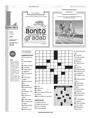 21. Refugio, pro- 38. (Quintana) Ciclista co- denadores.