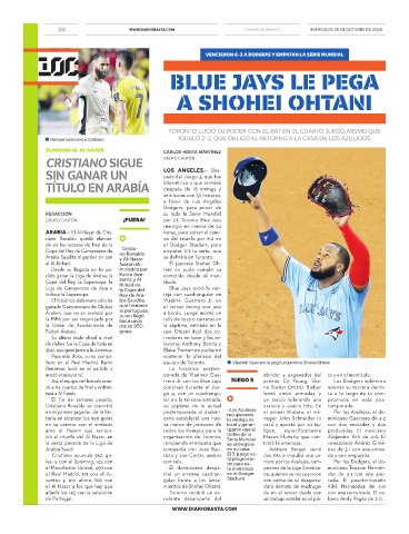 ñero en el Real Madrid, Karim equipo de Toronto. ● Vladimir Guerrero le pegó un jonrón a Shohei Ohtani