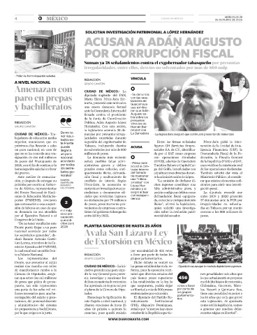 sión de labores en caso de que venientes de empresas contra- quien solicitó una investiga- das en Tabasco, por un monto