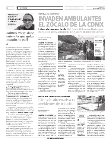 peso que la de quien encabeza el Poder CIUDAD DE MÉXICO.- La pitalino, Franciso Soni Solcha- QUEJAS En el 2020, la Semovi conta-