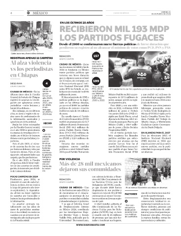 4 carpetas de investigación ini- dana (PFC) 110.5 millones de En el mismo periodo tam- SIN ALIANZAS PARA EL 2027