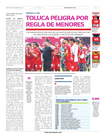 disputadas, Toluca es uno ● Toluca tendrá que cumplir con los jóvenes, si es que no quiere, que le quiten tres puntos