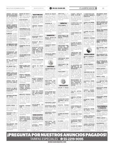 MARTES 4 DE NOVIEMBRE DE 2025 CIUDAD DE MÉXICO 55.22.19.90.95 CLASIFICADOS B! 21