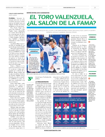 de 394 votos (66%) y Clemens ● Fernando Valenzuela, por tercera ocasión es candidato al Salón de la Fama En 2022, el Salón de la VALORADO