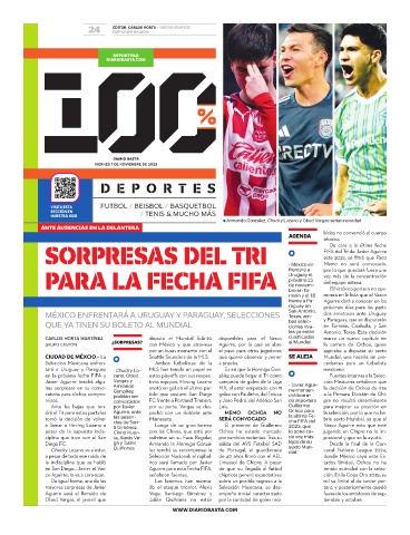 nas sorpresas en su convo- Armando anotó un gol en el último par- MX, al estar empatado con 11 • Javier Agui- la decisión de Ochoa de irse