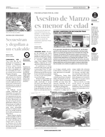 tre sembradíos de maíz a ron que los apenas 17 años, y que su fami- Carlos Manzo, y también que por el CJNG como represalía