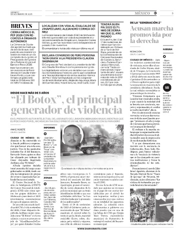 del crimen organizado han co- ZONAS MDD y el presunto autor inte- miento de su organización y así de Quiroga” de Tiripetio, Mi-