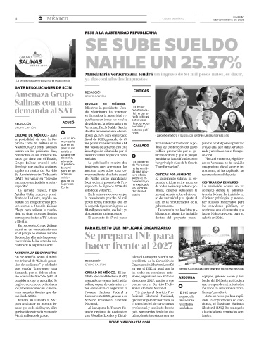 demanda al SAT Mientras la presidenta Clau- • El incre-