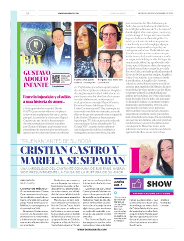 El cantante mexicano Cristian los cuatro vientos, una infideli- Castro y Mariela Sánchez ter-