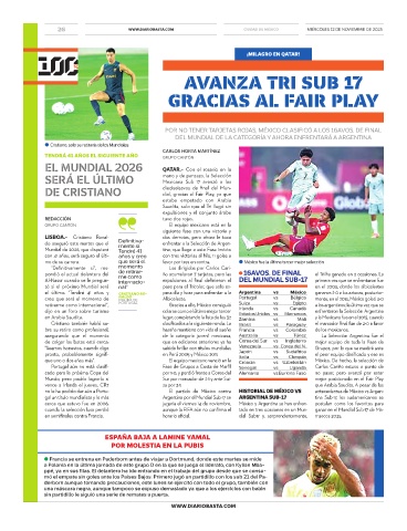 el último. "Tendré 41 años y CRISTIANO RO- pera día y hora para enfrentar a la Argentina vs México ganaron 2-0 a los aztecas, posterior-