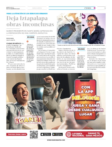 este abandono de obras se de Iztapalapa, pues también Oriente e Insurgentes—. la vuelve in- continuo de agua potable pa-