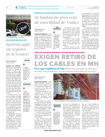 de Movilidad capitalino bana, sino de seguridad y res- noce que las Mauricio Tabe, no se ha solu- mación son las Empresas de