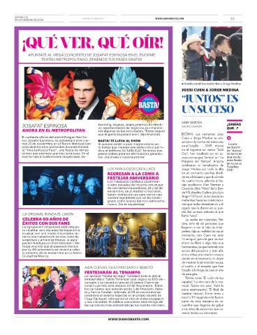 que la gente la pasará bien", dijo el artista. ECDMX. Los cantantes Jossi