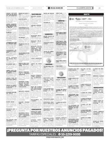 VIERNES 21 DE NOVIEMBRE DE 2025 CIUDAD DE MÉXICO 55.22.19.90.95 CLASIFICADOS B! 21