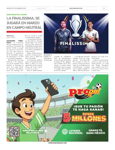 dro Domínguez, a la AFP Doha, sería la anfitriona España, mo- cargado de simbolismo La Finalissima, también minación de Copa Arte-