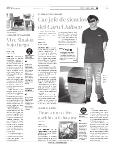 SINALOA. - Este 2025, Si- TRAICIÓN Cártel Jalisco Nueva Genera- zo para frenar la violencia