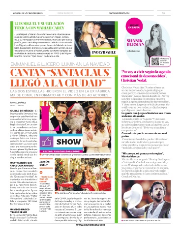 con la calidez vocal que dis- ● Emmanuel dijo estar contento de grabar con la bella Lucero el tema navideño “Mi cuerpo, mi grasa y mis reglas”,