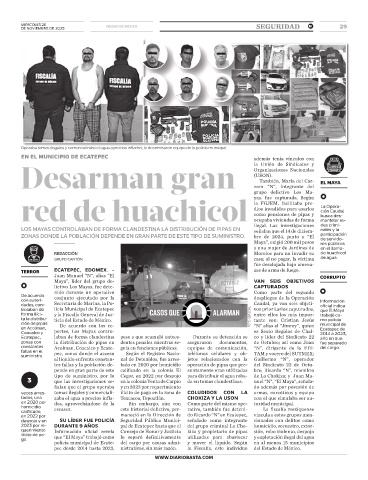3 que las investigaciones se- en la colonia Venta de Carpio da en tomas clandestinas. nuel “N”, “El Maya”, señala-