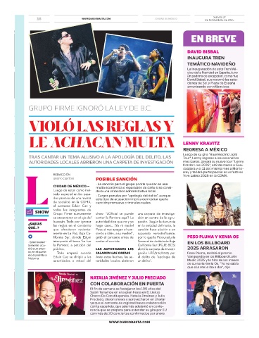 AUTORIDADES LOCALES ABRIERON UNA CARPETA DE INVESTIGACIÓN mexicanos, llevará su nuevo tour “Lenny