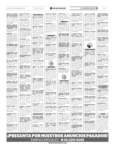 JUEVES 27 DE NOVIEMBRE DE 2025 CIUDAD DE MÉXICO 55.22.19.90.95 CLASIFICADOS B! 21