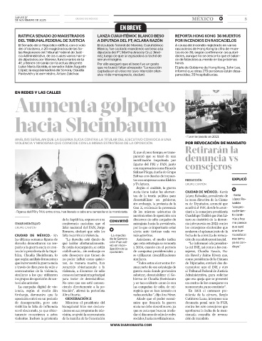 RATIFICA SENADO 20 MAGISTRADOS LANZA CUAUHTÉMOC BLANCO BESO REPORTA HONG KONG 36 MUERTOS