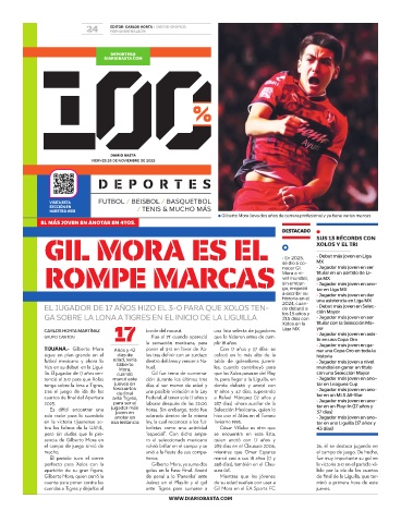 TIJUANA.- Gilberto Mora Años y 42 poner el 3-0 en favor de Xo- Con 17 años y 37 días- se • Jugador más joven en ga-
