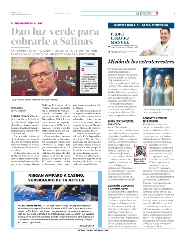 • Grupo Salinas deberá cubrir los impuestos fiscales el cosmos. Los extraterrestres