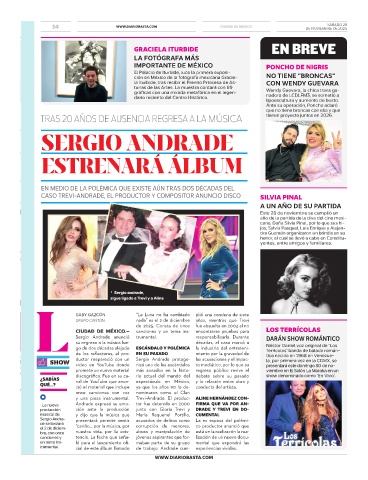 ductor reapareció con un Sergio Andrade protago- las acusaciones y el impac- la, por primera vez en la CDMX, se
