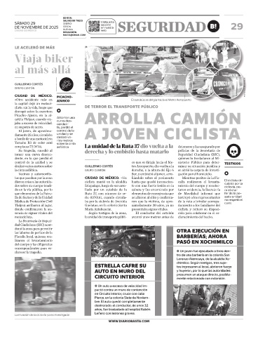 des sobre su cuerpo tendi- Iztapalapa, luego de ser arro- te con una fuerte lesión en la miento del cuerpo y recolec- ciclovía, pe-