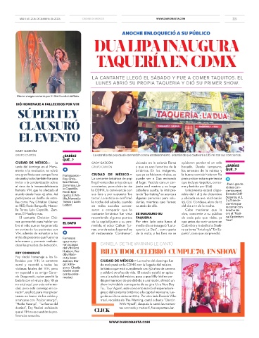invitar a la concientización sobre tian Chávez, llegó varios días antes de sus al lugar. Vestida con un con- que incluye: taquitos, conso- • Dua Lipa da-
