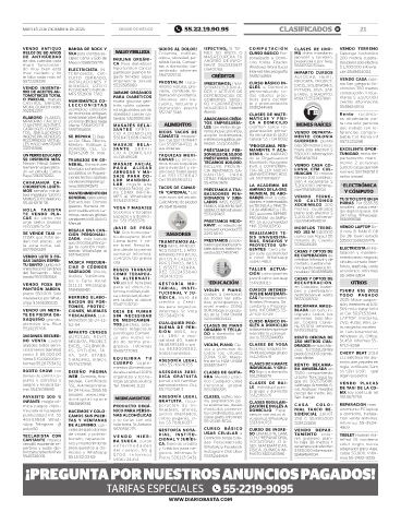 MARTES 2 DE DICIEMBRE DE 2025 CIUDAD DE MÉXICO 55.22.19.90.95 CLASIFICADOS B! 21