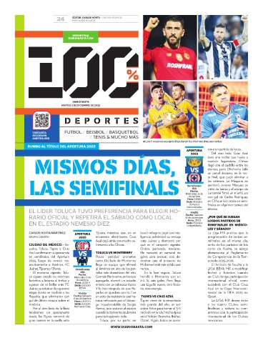 EL LÍDER TOLUCA TUVO PREFERENCIA PARA ELEGIR HO- Vuelta