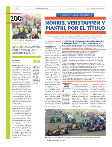 MAURICIO SULAIMÁN, PROCEDENCIA.- El Las fichas están del lado de Lando Norris, existen todo tipo de combina-