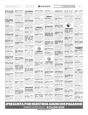 JUEVES 4 DE DICIEMBRE DE 2025 CIUDAD DE MÉXICO 55.22.19.90.95 CLASIFICADOS B! 21