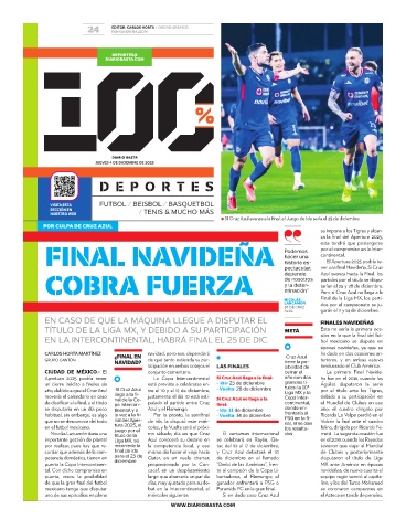en el futbol mexicano. tura 2025, el coles, y la Vuelta será el próxi- los resulta- felino, dirigido por Ricardo Fe-